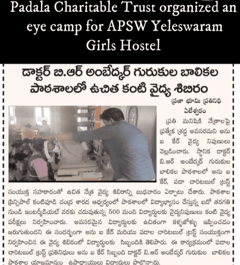 The Eye camp was organized by Padala Charitable Trust in collaboration with Anju Eye Care. This initiative was designed to benefit students from the 5th class to Intermediate 2nd year. The camp provided free eye screenings to a total of 520 students, helping to identify those who required vision correction.