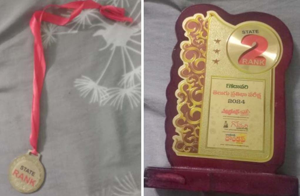 Vaaradhi Student S Neha Sri secured Second Place in the Godavari Telugu Talent Test at the AP State Level.