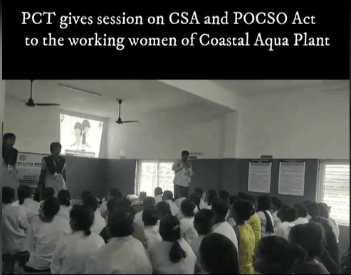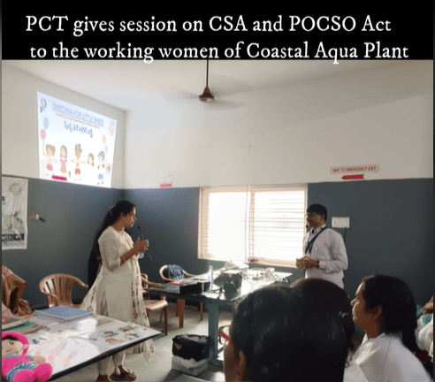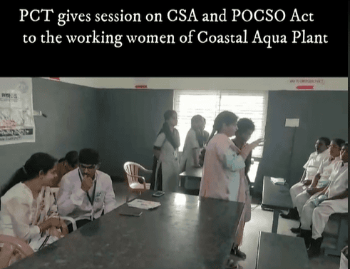 As part of 100% Child Safety District Kakinada Project on 7/11/2024, Awareness is done on Personal Safety Education, Child Sexual Abuse, POCSO Act and the Importance of Parenting to the working women of Coastal Aqua Plant near Nadakuduru with the help of Labour Department, Kakinada, Thanks to Commissioner Bulli Rani garu and assistant commissioners Sneha and Padmavathi garu.