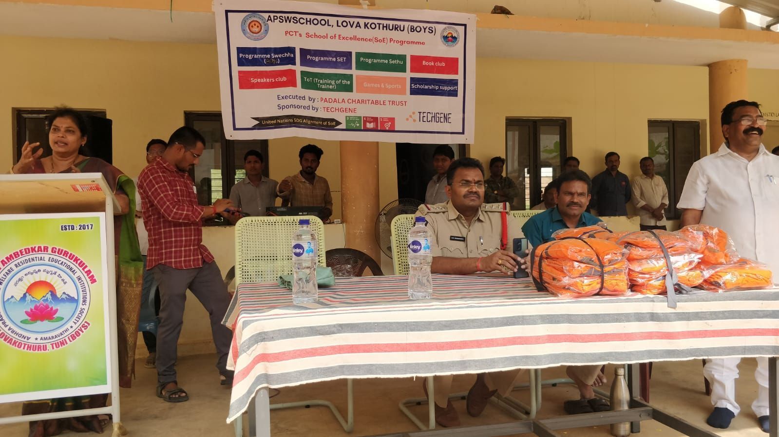On November 12, 2024, The Padala Charitable Trust (PCT) team visited APSW Lovakothuru Boys as part of the School of Excellence (SOE) program, marking a significant initiative to support physical fitness, sportsmanship, and student unity. The event featured the distribution of sports uniforms to students, a step aimed at eliminating barriers to participation in extracurricular activities. The occasion was honored by the presence of Tuni Town CI Mr. Ramakrishna and MEO Ms. Geetha, who underscored the importance of promoting inclusive sports participation at the school.
