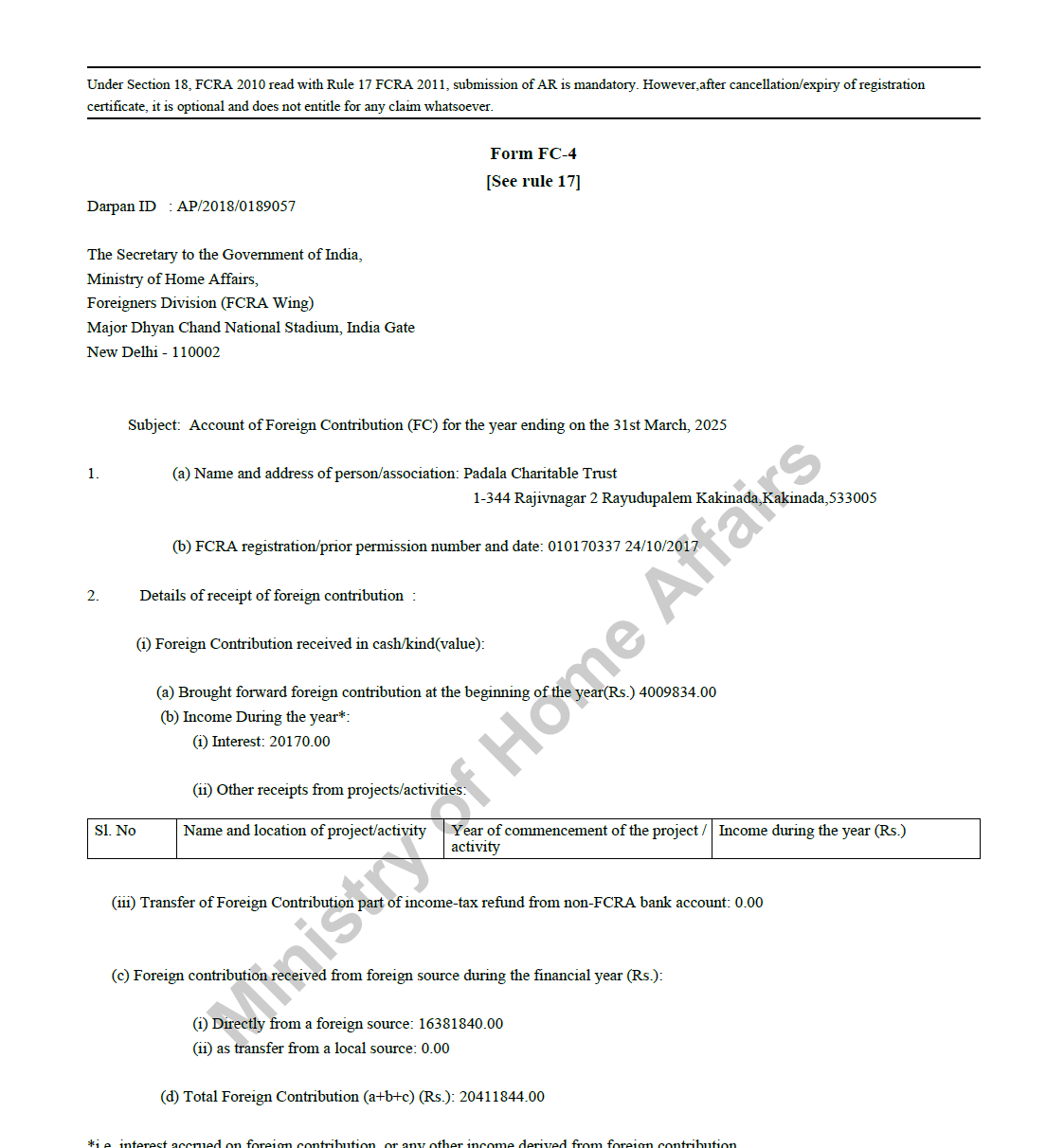 FCRA Annual Return 2018-19 FC4
